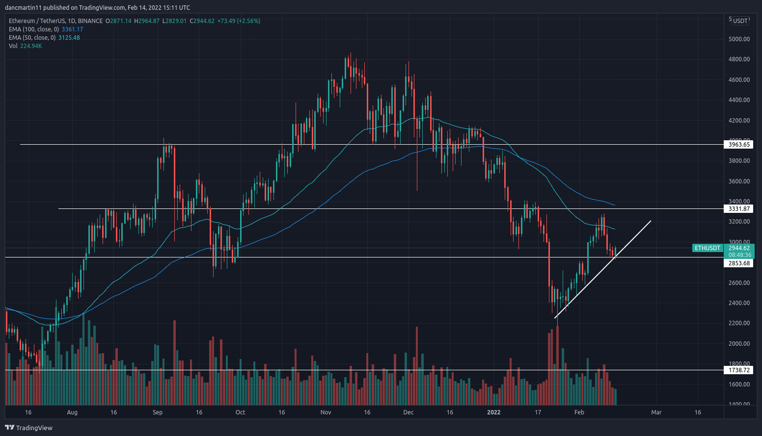 Ethereum cotiza por encima de los $2,900, y de manera muy similar al Bitcoin, se encuentra cerca de una zona de apoyo importante, por lo que se espera que vulnere nuevamente la barrera de los $3,000 en las próximas horas.