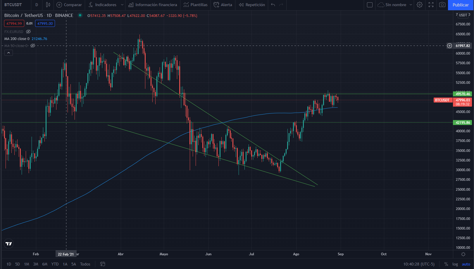 Por otro lado, el Bitcoin se encuentra en una zona de soporte interesante, cerca de los $48,000, por lo que podríamos esperar el regreso a los $50,000, pero estemos al tanto de cómo define ese punto crítico en el cual se encuentra.