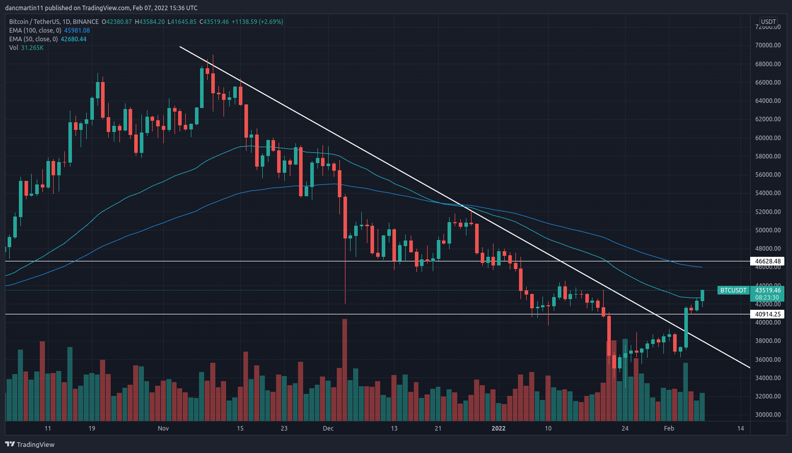 Gran parte de las criptomonedas lograron salir de esa mala racha esta semana, la mayoría a partir del pasado día viernes. Luego de que fueran publicados los reportes trimestrales de algunas de las empresas más importantes del mercado accionario, entre ellas Amazon. Sus reportes de utilidades mostraron resultados bastante positivos lo cual generó bastante optimismo y paz mental a los inversionistas, ya que días antes Meta Platforms Inc. (antes conocida como Facebook), anunciaba por primera vez que estaban perdiendo usuarios conforme transcurrían los días, lo que llevó al valor de las acciones de la empresa a tener pérdidas significativas. Esto había generado cierto pánico entre los inversionistas, ya que se especulaba que se trataba de una situación del mercado en general, y que las demás empresas reportarían resultados similares. Sin embargo, no fue así y pudimos ser testigos de un rally que llevó al Bitcoin a rebasar los $40,000 de nuevo, con un crecimiento de casi el 10% en dicha jornada.